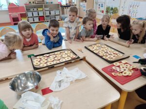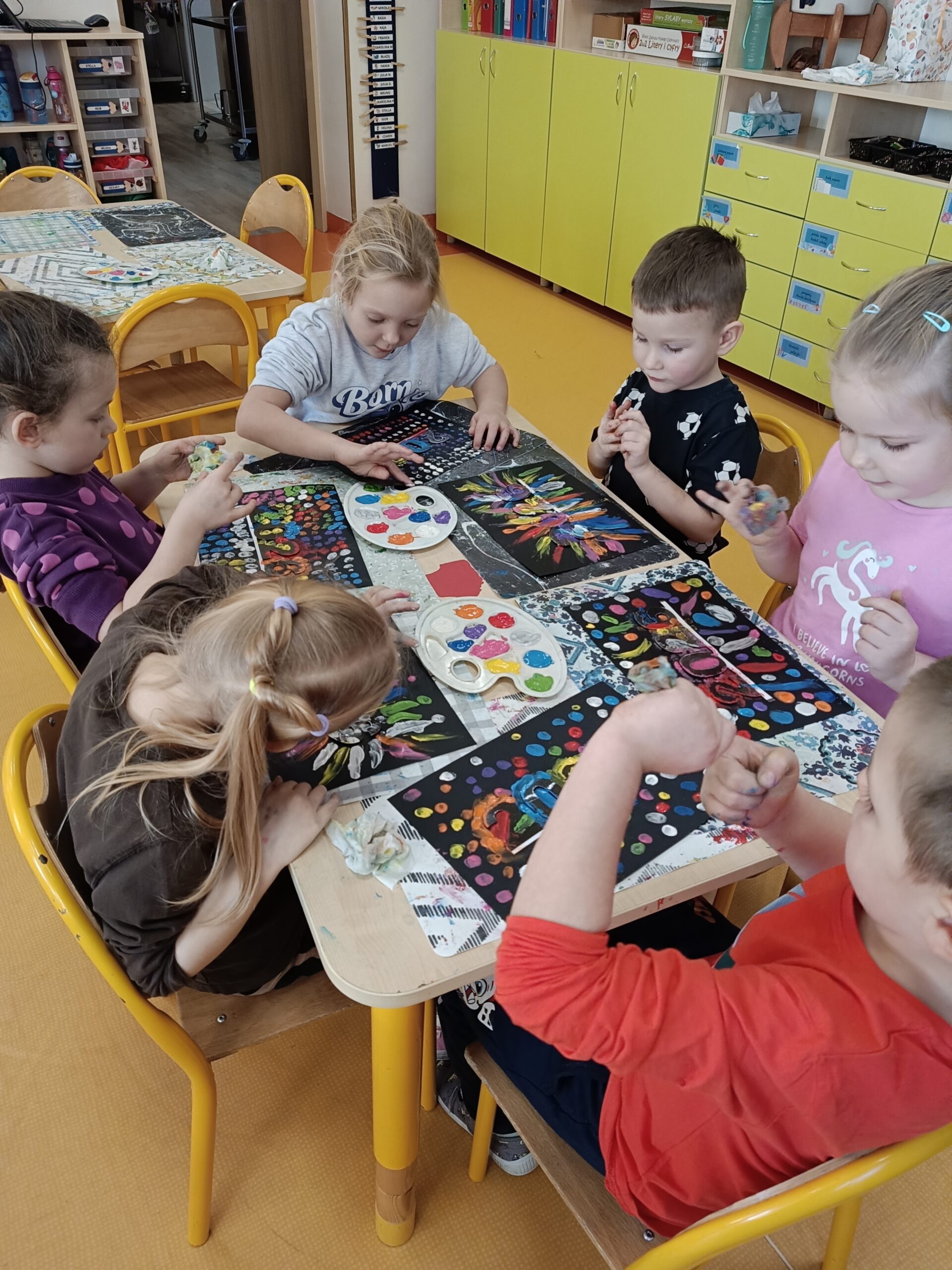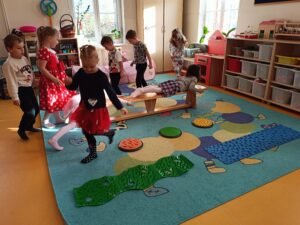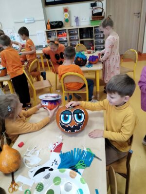 W naszej grupie bardzo się lubimy i chętnie pomagamy sobie, dużo tańczymy i śpiewamy a także tworzymy arcydzieła