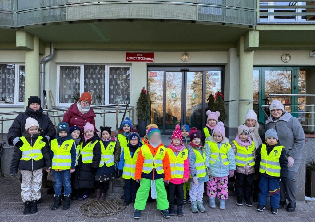 Dzieci z grupy Niebieskiej odwiedziły Pensjonariuszy Domu Pomocy Społecznej. Z okazji Dnia Babci i Dziadka przedszkolaki zaśpiewały piosenkę 🎶, zaprezentowały wierszyk 📜 oraz wręczyły piękne laurki wykonane własnoręcznie przez dzieci z grup: Niebieskiej, Granatowej i Fioletowej 💌.