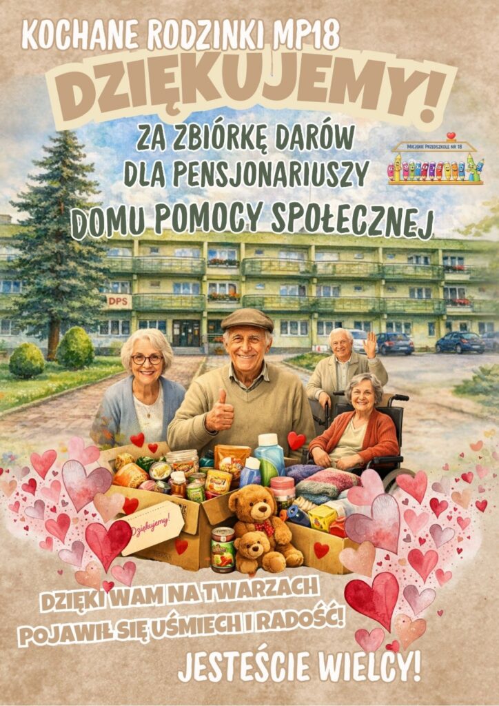 Dzięki ogromnemu zaangażowaniu Rodzinek z MP 18 udało się zebrać wiele podarków 🎁, które podczas spotkania zostały przekazane seniorom.